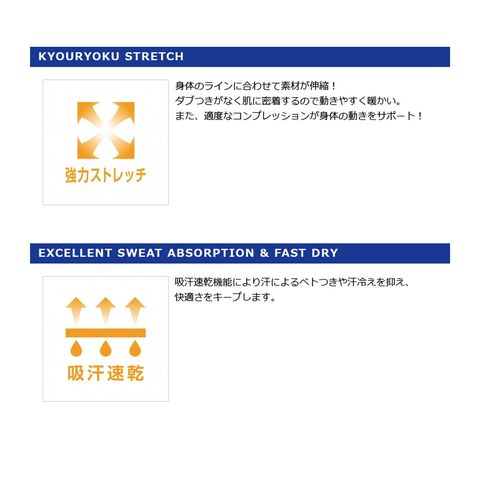 ・吸汗速乾機能により汗によるベトつきや汗冷えを抑え、快適さ