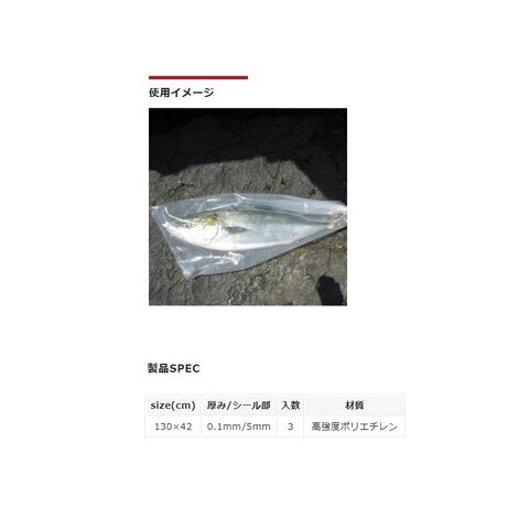 130x42cmという余裕のサイズなので、大型魚を入れても開口部を縛ることができます。