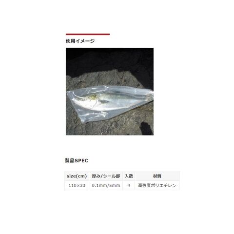 110x33cmと余裕のサイズ設定なので、魚を入れて開口部を縛ることが可能です。