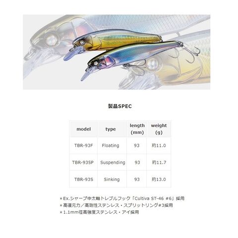 機能的にはTBR-107よりややリップをショート化し、リトリーブでもジャークでも、一層軽快な使用感を実現しました。