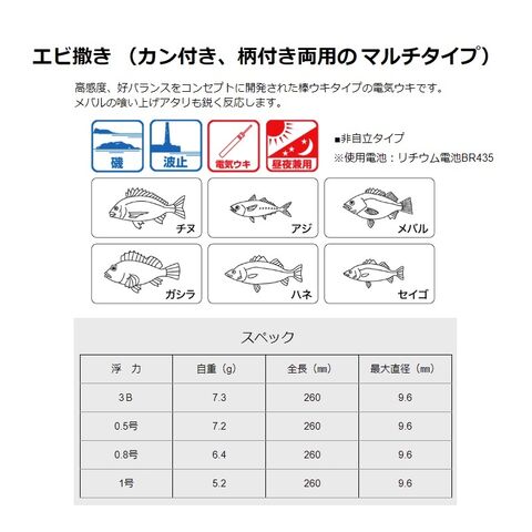 高感度、好バランスをコンセプトに開発された棒ウキタイプの電気ウキです。
