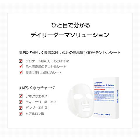 韓国コスメ デイリーダーマ マスク シート 10枚入 保湿 水分チャージ 低刺激 高濃縮 ぴったり貼り付く マスクしたまま はがれない しっとり感 韓国 マスクパック シートパック 美容パック ASIS-TOBE マスクパック アズイズトゥービー 韓国 コスメ