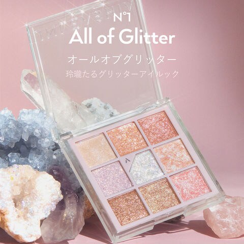 様々なサイズとテクスチャーのグリッターで演出する感性的なアイルック