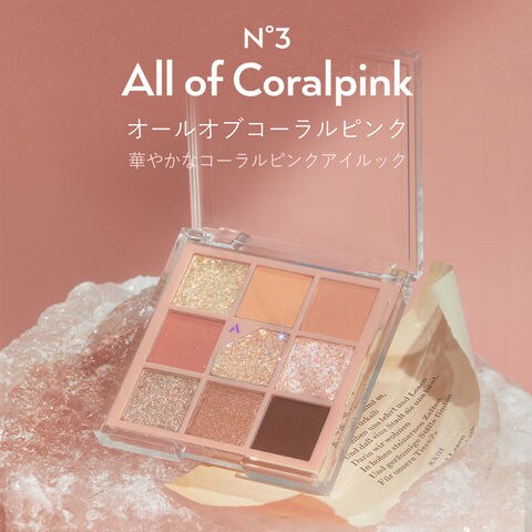 デイリームードの演出からスペシャルなグリッタールックの演出もできるように多様なテクスチャーでの組み合わせしたアイパレット