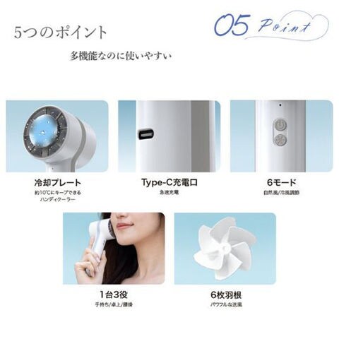 充電式なので、夏の通勤・通学、アウトドアなど、どこでも使用できます
