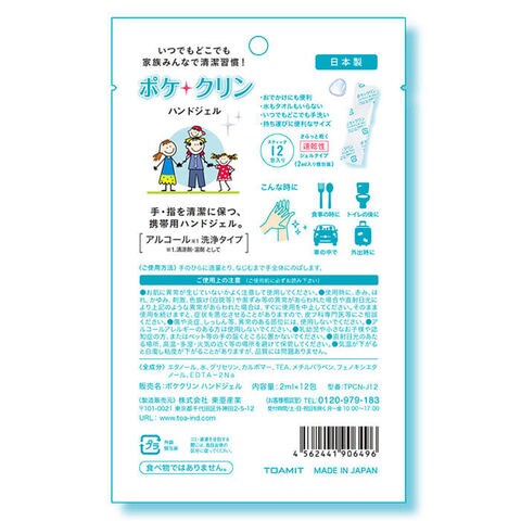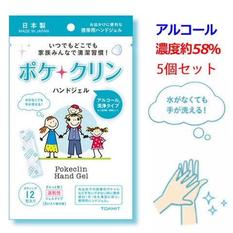 【5個セット] アルコール 濃度約58% 日本製 ポケクリン 除菌 アルコールハンドジェル スティック 12包入り アルコール除菌 ウイルス 細菌 除菌 除菌ジェル アルコールジェル エタノール ジェル 携帯用