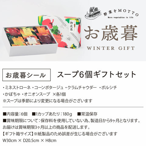 お歳暮 シール スープ 6個 ギフト セット 野菜をMOTTO カップのままレンジで1分 簡単贅沢 国産野菜 常温保存 御歳暮 ギフト 2025 冬ギフト プレゼント 送料無料 野菜 朝食 夕食 ランチ 備蓄