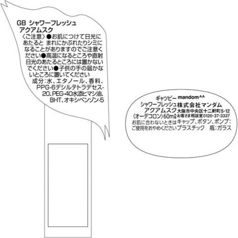 表示成分/全成分:水、エタノール、香料、PPG6デシルテトラデセス20、PEG40水添ヒマシ油、BHT、オキシベンゾン5