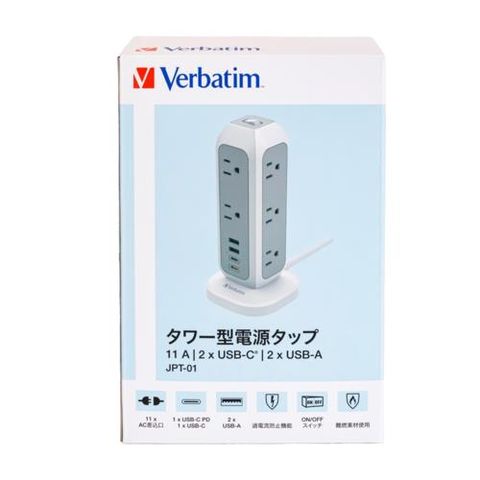 Verbatim(バーベイタム) JPT-01 32250 タワー型電源タップ ACx11 USB-Cx2(1 with PD) USB-Ax2