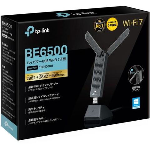 TP-Link(ティーピーリンク) Archer TBE400UH BE6500 ハイパワーUSB Wi-Fi 7子機 高性能トライバンドアンテナ USB 3.0ケーブル、台座付属