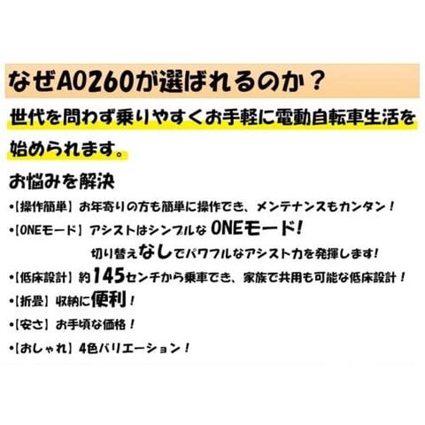 電動アシスト 26インチ オールワン AO260 スペック