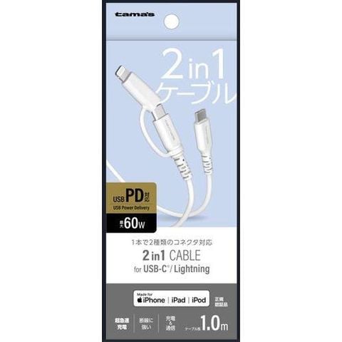 多摩電子工業 TH336LCC10W ホワイト 2in1 USB-C to C&Lケーブル 1m