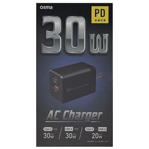 オズマ ACUCM-30PQBK ブラック PD30W出力 AC-USB充電器 2Port C&A