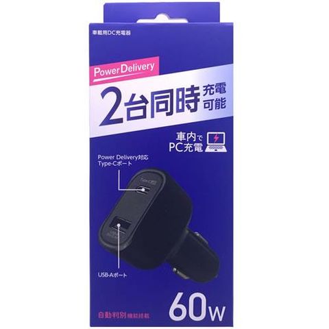 オズマ DCUC-60ADBK ブラック PowerDelivery60W出力対応車載用DC充電器Type-C/USB-Aモデル
