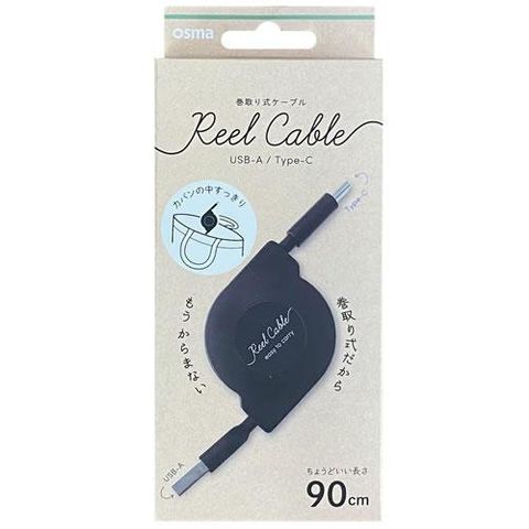 オズマ UDR-3C01K ブラック 巻取式USB-A to Type-Cケーブル 90cm