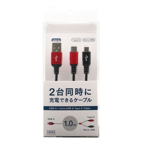 オズマ UC-MC10RD レッド 2台同時充電可能 二股ケーブル Type-C-micro 1.0m