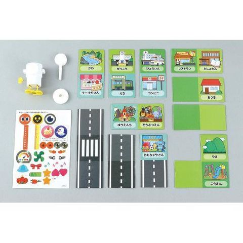 セット内容 : ロボタマ本体×1、スキキライスティック+土台×1、シール台紙×1、コースパネル×11