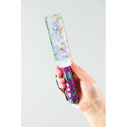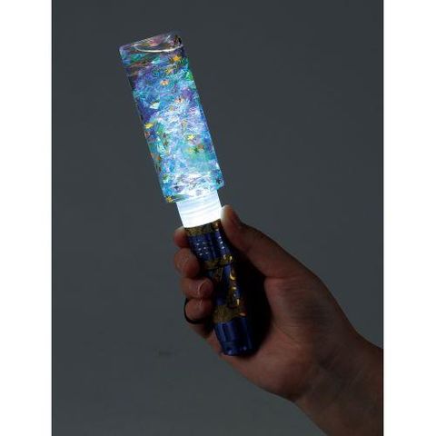 ■幻想的な光が輝くライト付き!スティックの中でオーロラフィルムと星形のホログラムグリッターが舞って明るいところでも暗いところでもきれいに見えます。暗いところでライトを点灯し、壁にあてるとオーロラのような光を投影させることができます。