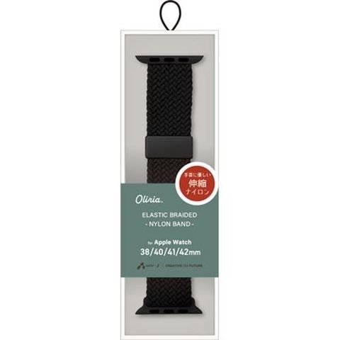 エアージェイ(air-j) AWB-5 BK Apple Watch バンド 伸縮ナイロン 38mm/40mm/41mm/42mm 対応