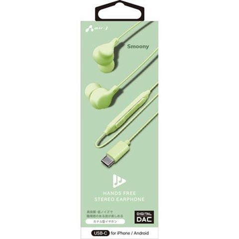 エアージェイ(air-j) HA-ES48 GR Smoony type-C有線 DAC搭載高音質イヤホン