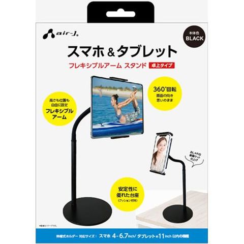 エアージェイ(air-j) ATST-2-BK ブラック スマホ&タブレット用 フレキシブルアーム スタンド 卓上タイプ