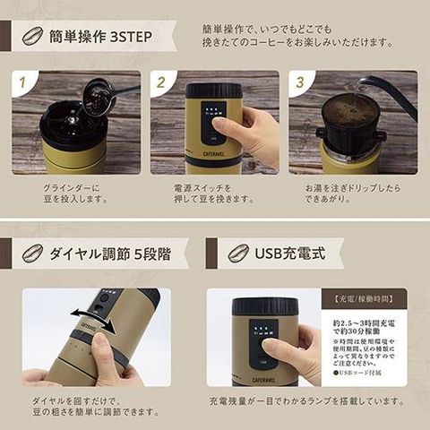 ■アウトドアやオフィス等、いつでもどこでも挽きたてのコーヒーを楽しめます
