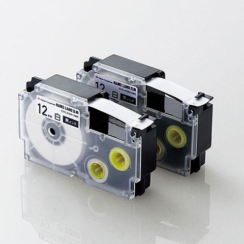 エレコム(ELECOM) CTC-CXR12WE-2P カラークリエーション ネームランド互換テープ 白/黒文字 12mm幅 2個