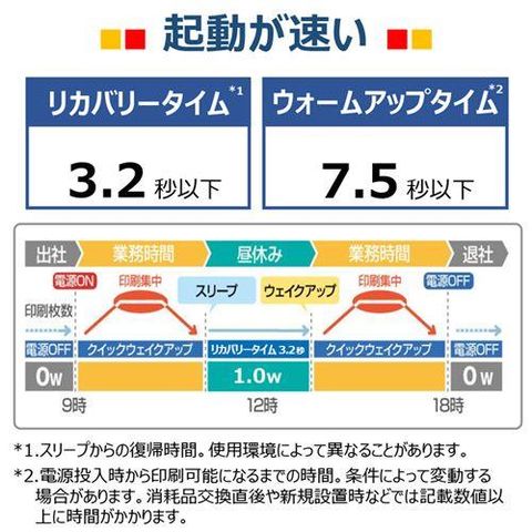 ●ファーストプリントがA4 約5.4秒と速く、A4両面プリントも毎分18.5ページの高速プリントを実現