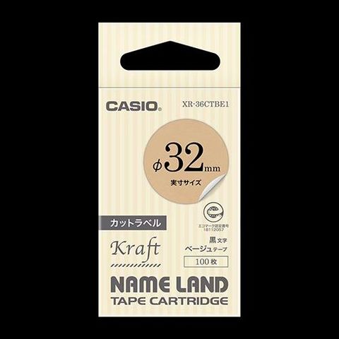 CASIO(カシオ) XR-36CTBE1 黒文字・ベージュ ネームランドテープ カットラベル