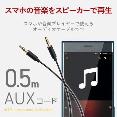 ■スマートフォンやタブレット、音楽プレーヤーのφ3.5ステレオミニジャックと、スピーカーやコンポ、カーステレオ、Bluetooth(R)スピーカーなどのφ3.5 AUX INポートを接続することで、手軽に音楽を楽しめるケーブルです。