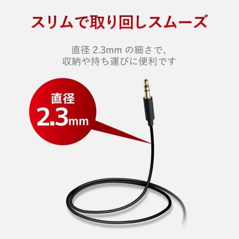 ■目立たず配線や収納がしやすい、直径2.3mmのスリムケーブルです。