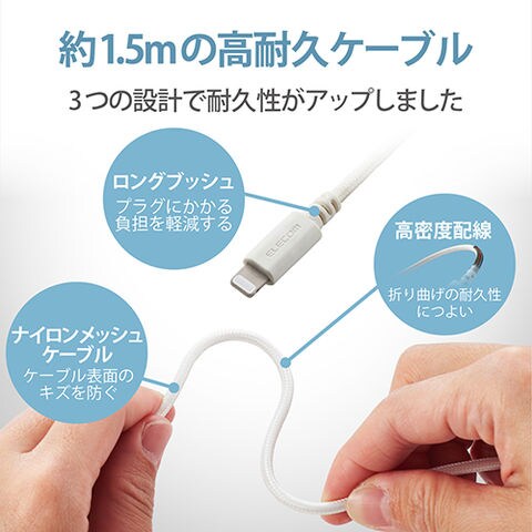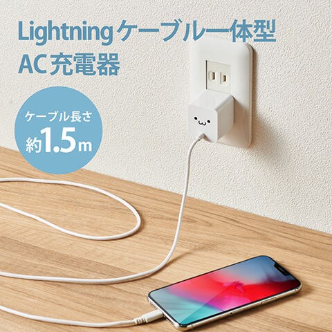 エレコム ELECOM MPA-ACL07WF(ホワイトフェイス) 12W Lightningケーブル一体型AC充電器 USB充電器 1.5m