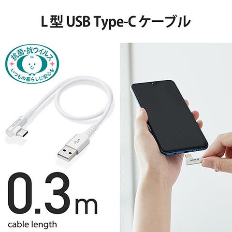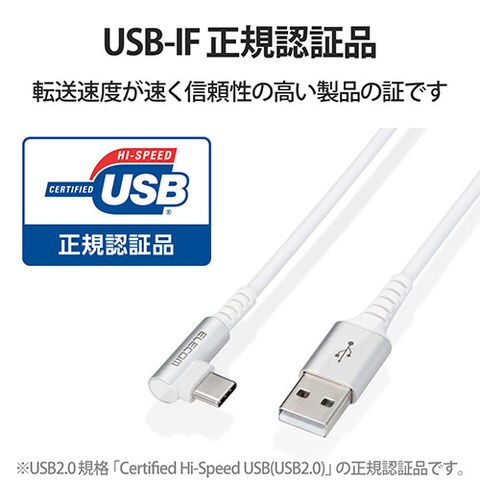 エレコム(ELECOM) MPA-ACL03NWH ホワイト USB2.0ケーブル 認証品 A-C L型コネクタ 0.3m