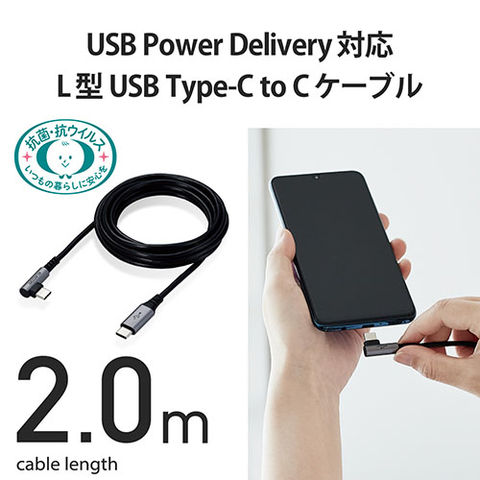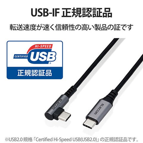 エレコム(ELECOM) MPA-CCL20NBK ブラック USB2.0ケーブル 認証品 C-C L型コネクタ 2m