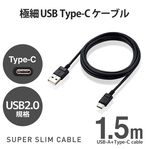 エレコム(ELECOM) MPA-ACX15BK ブラック USB-Cケーブル Type-Cケーブル 極細 A-C 1.5m