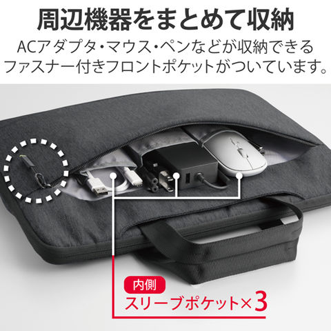 ■ACアダプタ・マウス・ペンなどの周辺機器をまとめて収納できるフロントポケットがついています