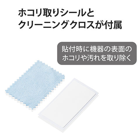 ■貼る際に機器の表面のホコリや汚れを取り除くホコリ取りシールとクリーニングクロスが付属します。