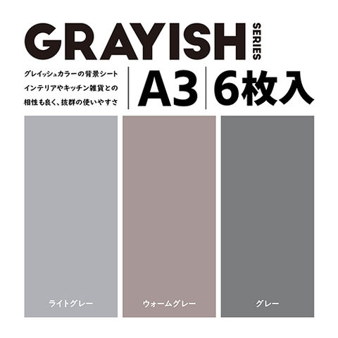 ■GRAYISHは洗練された印象でミニマル・アーティスティックな演出ができるグレイッシュカラーの背景シートです。