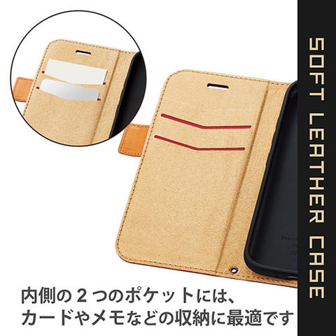 ■便利な7つの機能を搭載した、革のようなやわらかな風合いのらくらくスマートフォン(F-52B)用ソフトレザーケース(手帳型)です。