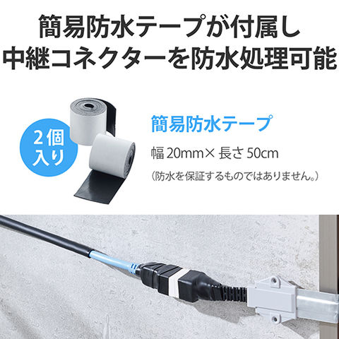 ■簡易防水テープが付属しているので、屋外設置の際に中継コネクターを防水処理することができます。※防水を保証するものではありません。
