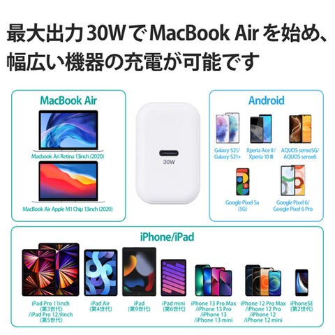 対応機種:USB Type-C(TM)(USB-C(TM))ポートからUSB Power Delivery 3.0(30W)の規格内で充電が可能な機器