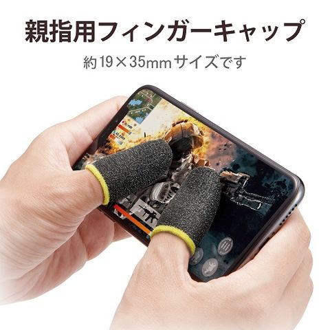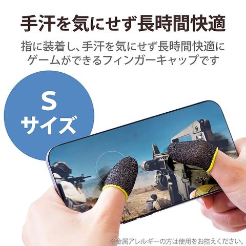 ■指に装着し、手汗を気にせず長時間快適にゲームプレイができるスマートフォン用ゲーミングフィンガーキャップ(Sサイズ)です。