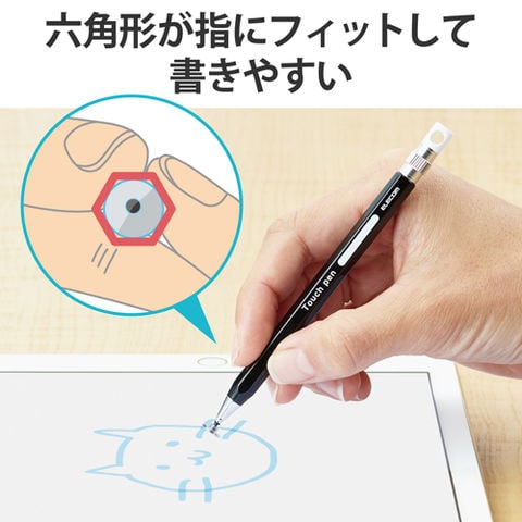 エレコム(ELECOM) P-TPENDEBK ブラック タッチペン スタイラスペン ディスクタイプ 六角鉛筆型