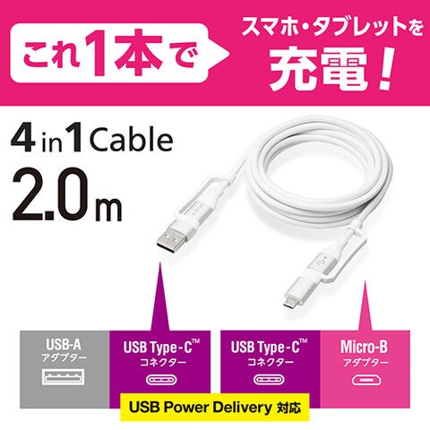 エレコム(ELECOM) MPA-AMBCC20WH ホワイト 4in1 充電/データ通信ケーブル PD対応 60W 20V/3A /2m