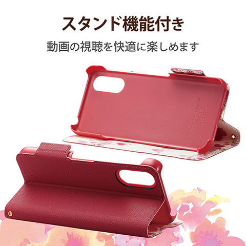 エレコム(ELECOM) PM-S224PLFUJPND ディープピンク シンプルスマホ6用 ケース カバー ソフトレザー 手帳型 花柄