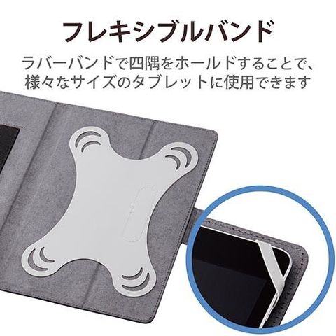 ■シリコン製ラバーバンドでタブレットの四隅をしっかりホールドすることで、8.5~11.5インチのタブレットにフレキシブルに対応する汎用ケースです。