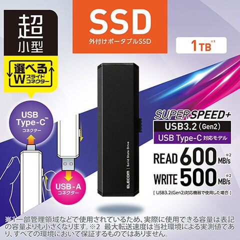 エレコム(ELECOM) ESD-EWA1000GBK ブラック USB3.2 Gen2 対応 外付けポータブルSSD USB-A/C切り替え 1TB