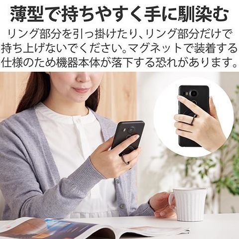 ■スマホの背面にマグネットで貼り付け、快適なスマホ操作をサポートするマグネット着脱リングです。