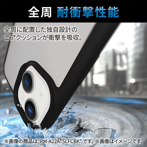 ■全周に配置した独自設計のエアクッションが衝撃を吸収し、背面には高硬度の特殊樹脂を採用した、iPhone 14 Pro用TOUGH SLIM LITEケースです