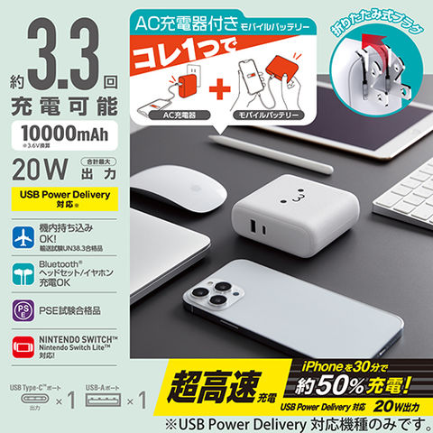 ■AC充電器としてもモバイルバッテリーとしても使用可能な2in1タイプのAC充電器一体型モバイルバッテリーです。
